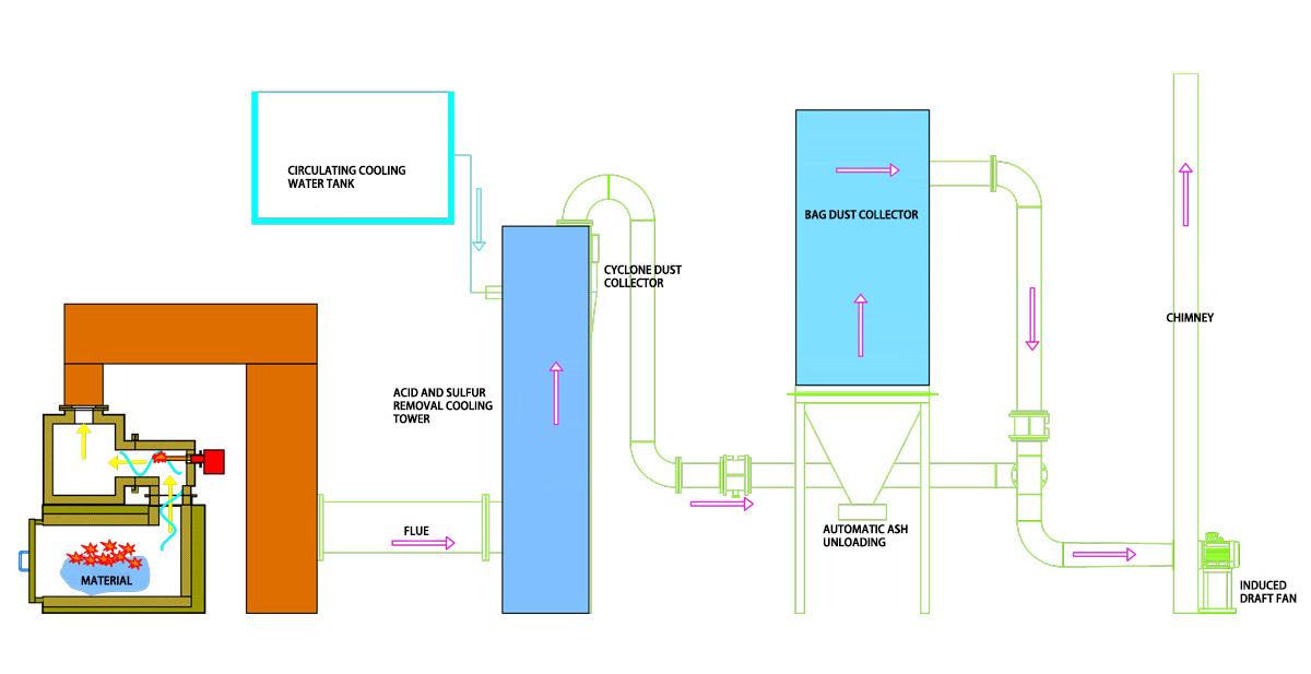 Plinovi, nakon ohlade i opuštene, prolaze kroz sakupljač prašine srednje učinkovitosti i sustav uklanjanja ciklonske prašine, učinkovito odvajajući čestice i velike čestice nastale tijekom procesa neutralizacije.